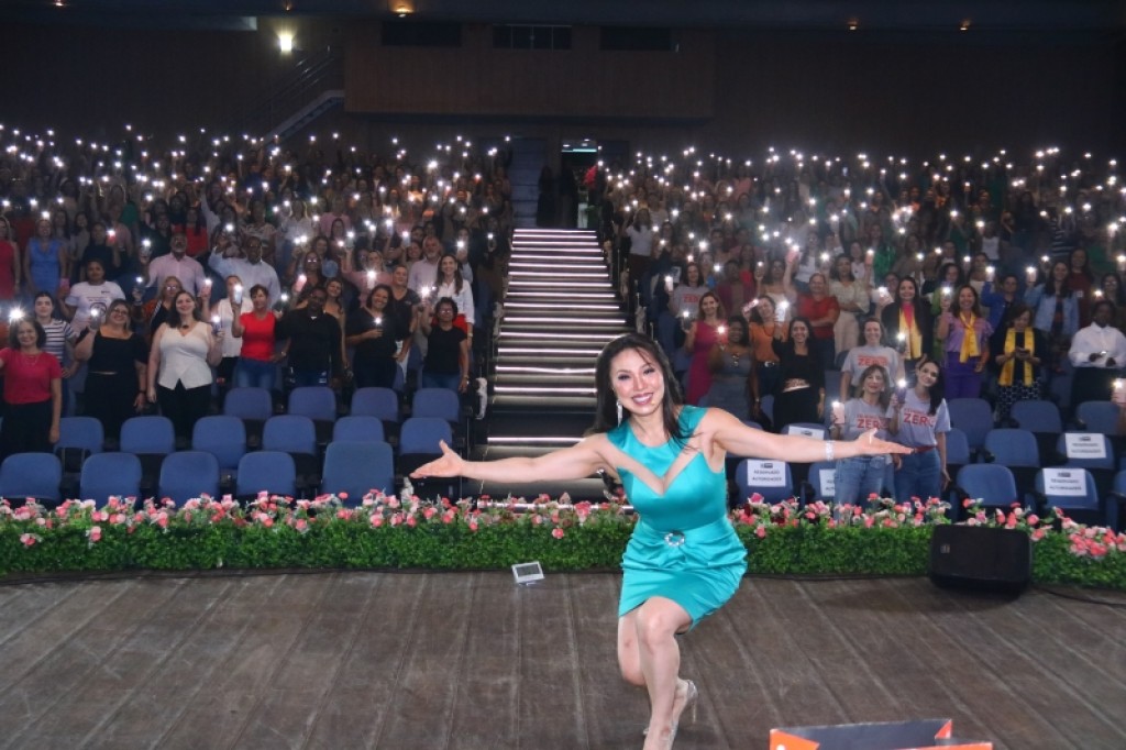 A Prefeitura de Sinop realizou, na manhã de hoje (6), um evento em comemoração ao Dia Internacional da Mulher, às servidoras públicas municipais. A solenidade foi realizada no Centro de Eventos Dante de Oliveira e reuniu cerca de 1,2 mil mulheres para acompanhar – em duas sessões – o talk show “Protagonismo e a Força da Mulher”, com a psicóloga e palestrante, Meiry Kamia.
