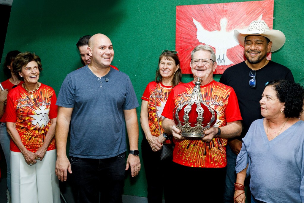 Durante a cerimônia, o prefeito, secretários e demais presentes foram coroados e receberam as bênçãos da bandeira do Divino Espírito Santo, gesto que simboliza a fé e reforça as manifestações culturais e religiosas da capital mato-grossense.