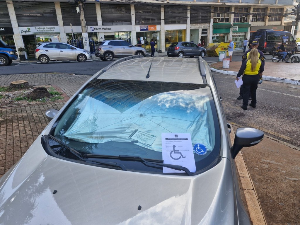 Pela manhã da última sexta-feira (4), agentes de trânsito circularam na Praça Alencastro para verificar se veículos estacionados nas vagas de PCDs e idosos exibiam o cartão de identificação. Ao verificar que o motorista não deixou a identificação, os agentes deixaram o formulário anexado ao limpador de para-brisas.