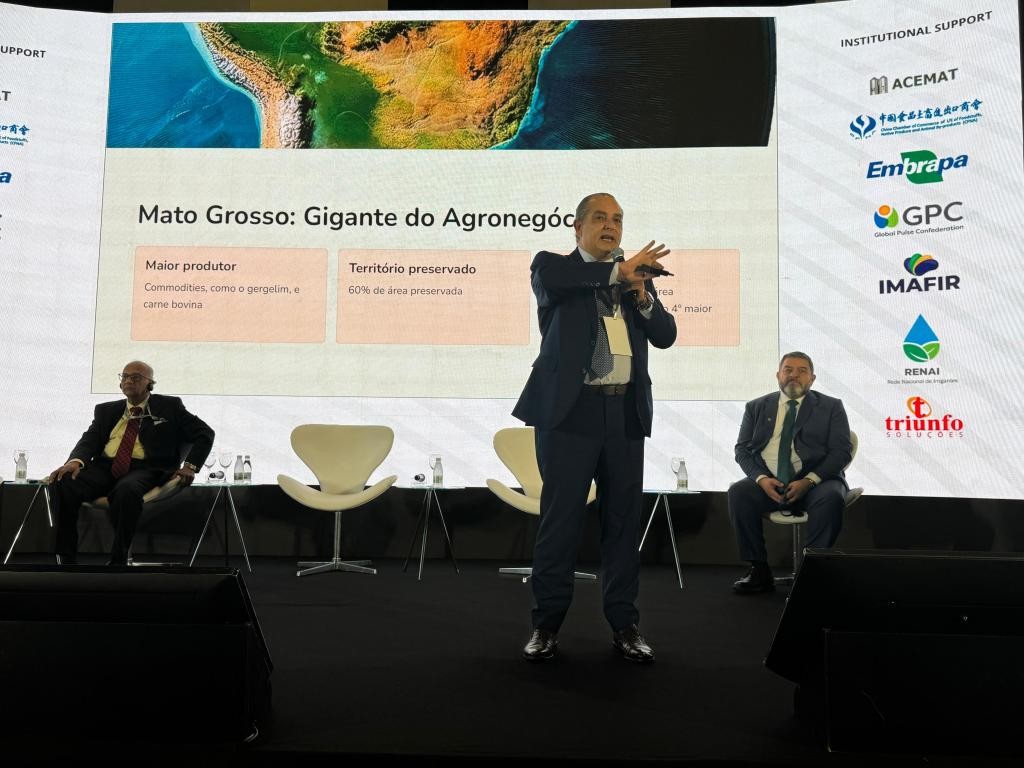 Em sua fala, o secretário destacou a importância de Mato Grosso na produção de pulses como o gergelim e o feijão-carioca, reforçando o papel estratégico do Estado na segurança alimentar global.