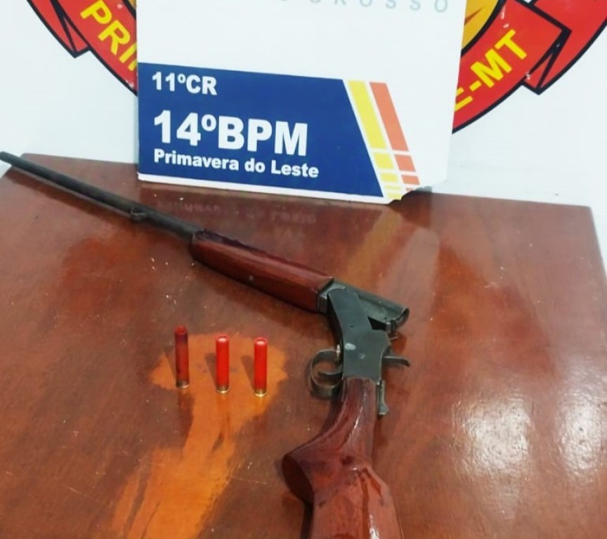 Policiais militares do 14º Batalhão de Primavera do Leste prenderam, nesta quarta-feira (23.10), uma mulher suspeita de atirar contra a casa da nora, de 18 anos. As equipes apreenderam com ela uma espingarda calibre 36 com três munições.