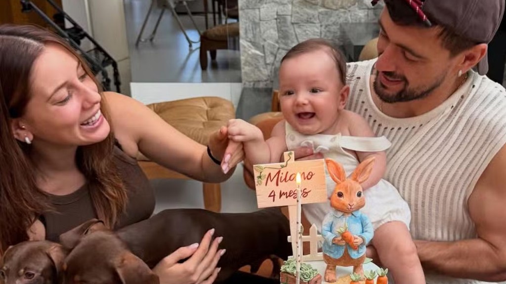 Arrascaeta comemora quatro meses do filho Milano com registros em família: ‘Amor