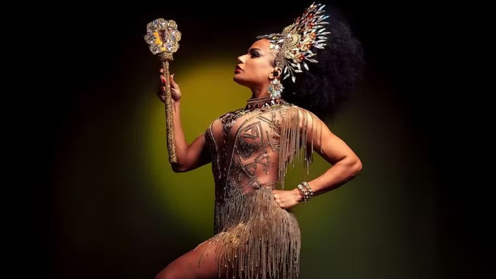 Com figurino poderoso, Quitéria Chagas brilha em ensaio de Carnaval: ‘Rainha’