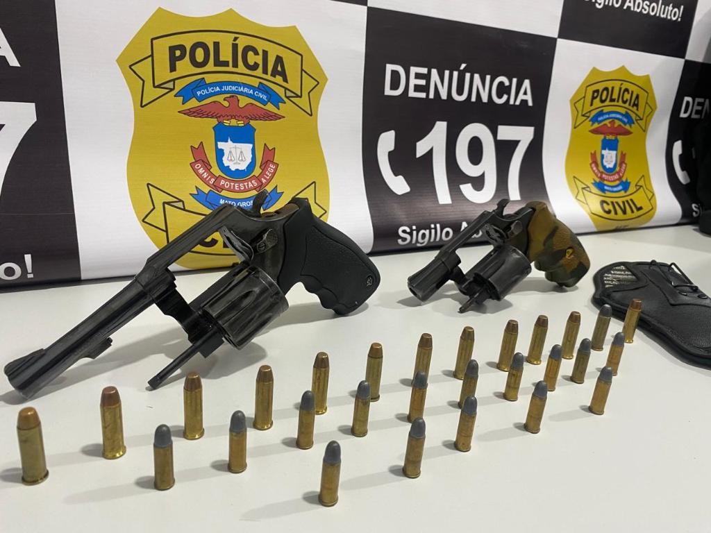 Diante das evidências, os policiais realizaram a abordagem do suspeito e da mulher que estavam na casa, sendo apreendidas com eles duas armas de fogo (dois revólveres calibre 38). Questionados, eles confessaram estar associados a um terceiro suspeito que foi preso em seguida em uma quitinete nas proximidades, em posse de diversas munições calibre 32.