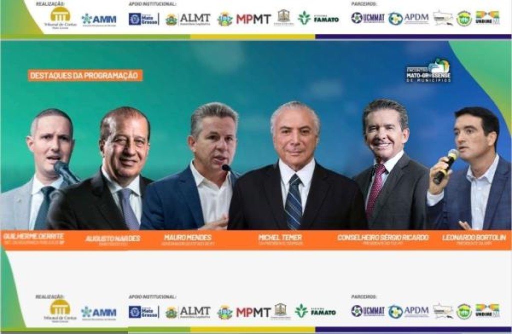 Além do ex-presidente Temer, já estão confirmadas as presenças do ministro do Tribunal de Contas da União (TCU), Augusto Nardes, do secretário de Segurança Pública de São Paulo, Guilherme Derrite, do presidente da Confederação Nacional de Municípios (CNM), Paulo Ziulkoski, do governador Mauro Mendes, dos conselheiros Antonio Joaquim e Valter Albano, o procurador-geral do Ministério Público de Contas (MPC), Alisson Alencar, bem como especialistas nas áreas de educação, assistência social, meio ambiente, agricultura familiar, dentre outras.