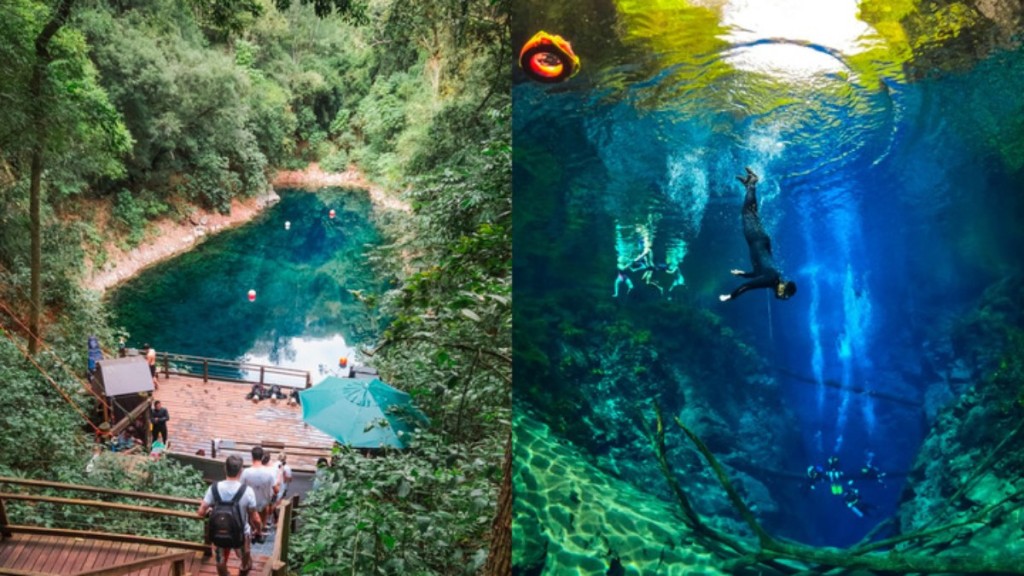 A Lagoa Misteriosa, ponto turístico da região de Bonito, no Mato Grosso do Sul, reabriu para visitação em 2025. O local é conhecido pelas suas águas profundas, que até hoje não foram medidas.